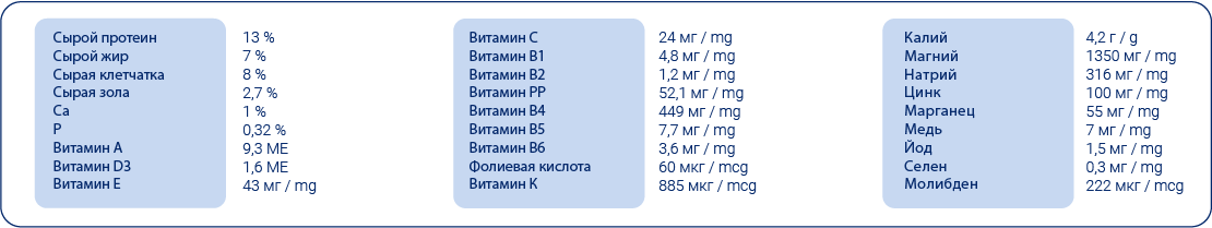 Сбалансированная смесь с добавлением высококачественных зерновых культур и овощей, которая разработана для удовлетворения пищевой потребности хомяка. С целью сохранения здоровья и бодрости Вашего питомца разнообразный состав рациона дополняют аппетитные хрустящие гранулы, содержащие витаминно-минеральный комплекс.
